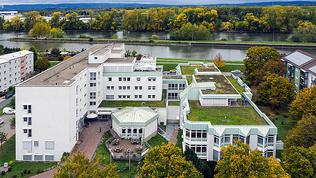 Das Altenzentrum Haus Mainblick liegt direkt am Ufer des Mains, von dem man die vorbeifahrenden Schiffe beobachten kann.